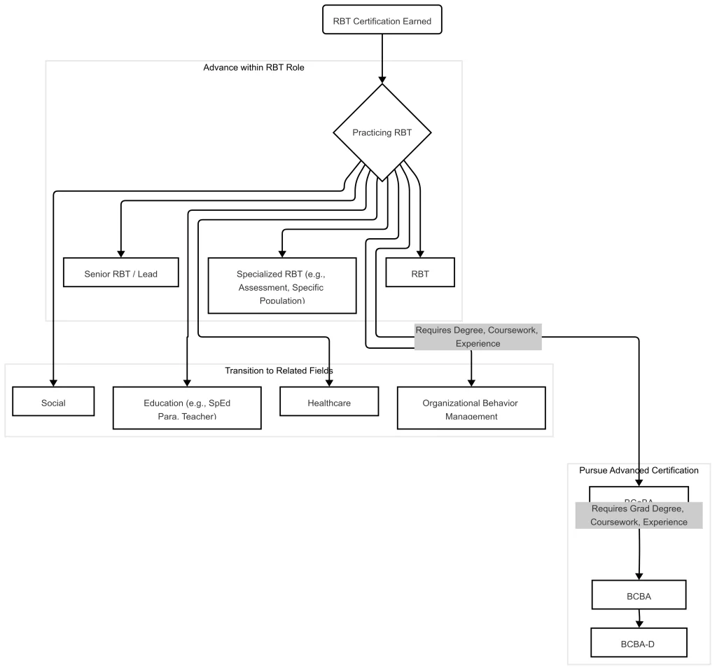With additional education and supervised experience, RBTs can progress to becoming BCaBAs or BCBAs, which offer increased responsibility, autonomy, and compensation.