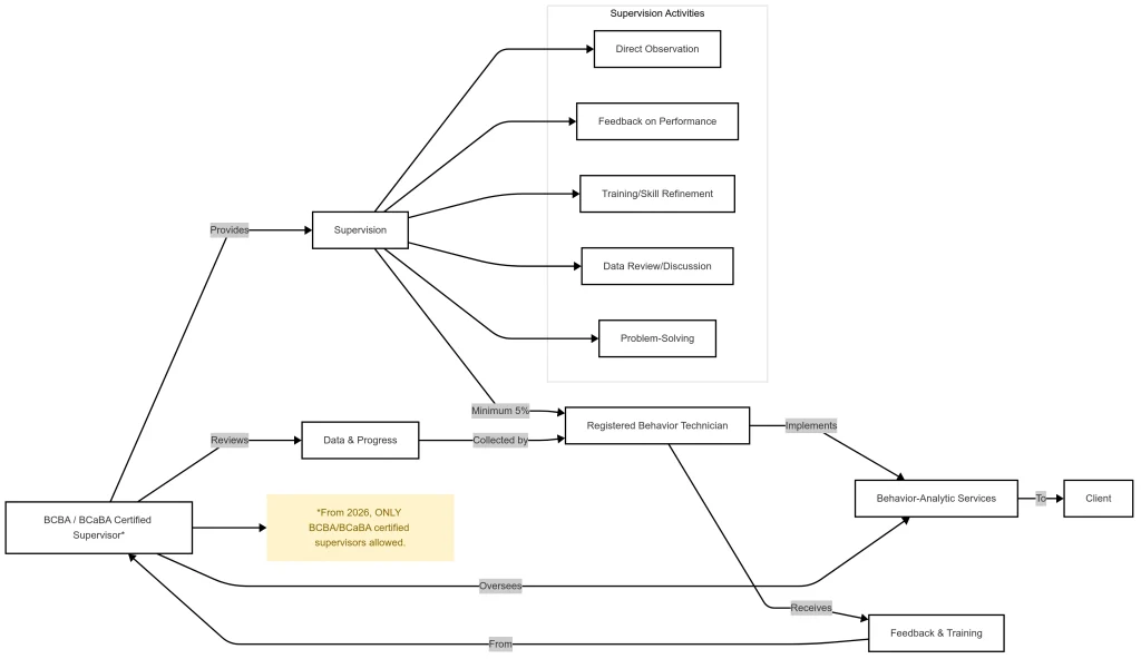 - Supervisor role requires all RBT Supervisors to hold BCaBA or BCBA certification.